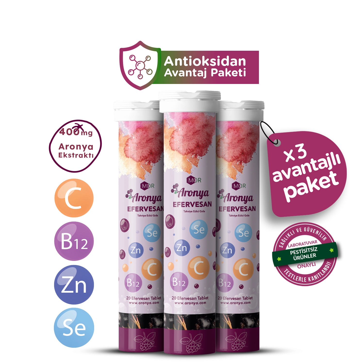 Mor Aronya 3'lü Efervesan 20 Tablet Paketi