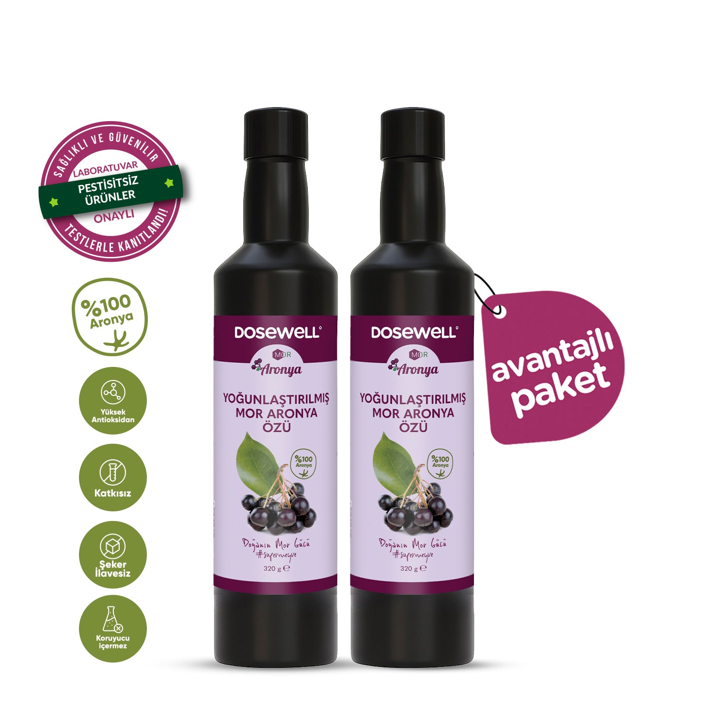 Mor Aronya Yoğunlaştırılmış Aronya Özü 2’li Paket – Katkısız, Doğal ve Antioksidan Zengini Destek