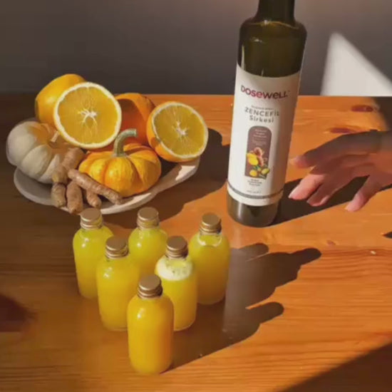 Dosewell Zencefil Sirkesi, taze zencefil köklerinin doğal fermantasyon süreciyle sirkeye dönüştürülmesiyle elde edilen özel bir üründür. Fermantasyon sırasında laktik asit ve asetik asit bakterilerinin doğal olarak geliştirdiği süreç, zencefilin bileşenlerini sirkeye aktarır. Üretiminde herhangi bir katkı maddesi veya koruyucu kullanılmaz. Hem mutfakta özgün tatlar yaratmak hem de dengeli bir yaşam tarzına eşlik etmek için ideal bir doğal sirke çeşididir.